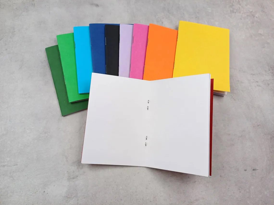 All our notebooks have a 200gsm thick card stock cover and are binded with two staples. The inside pages are professionally printed on 100gsm paper which is super smooth to write on and bright white in colour.