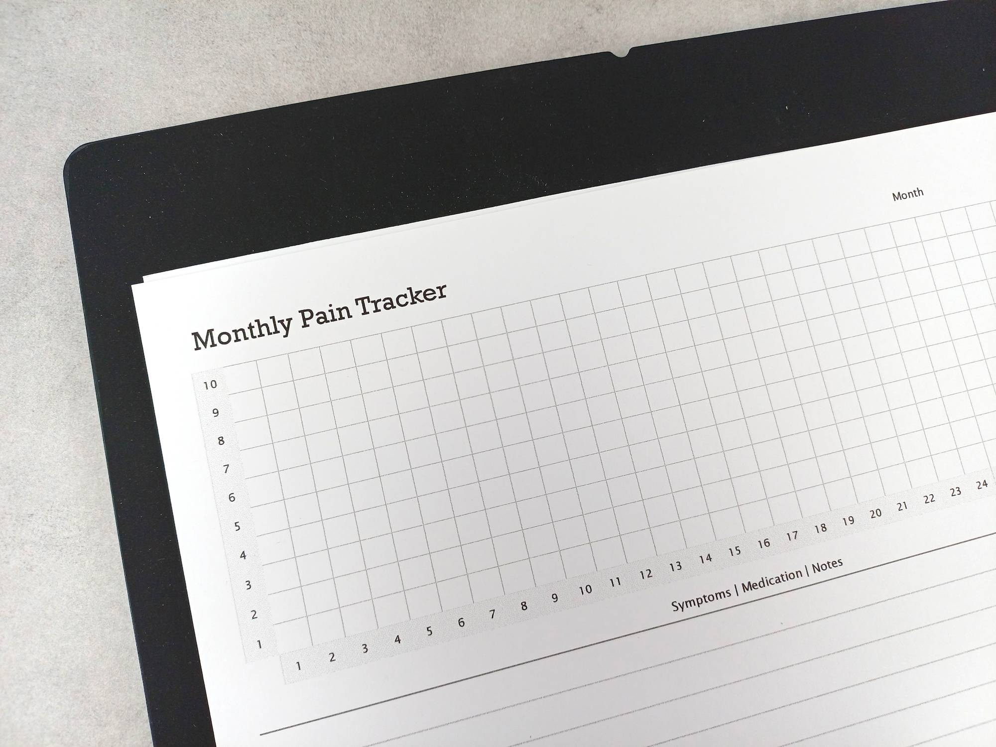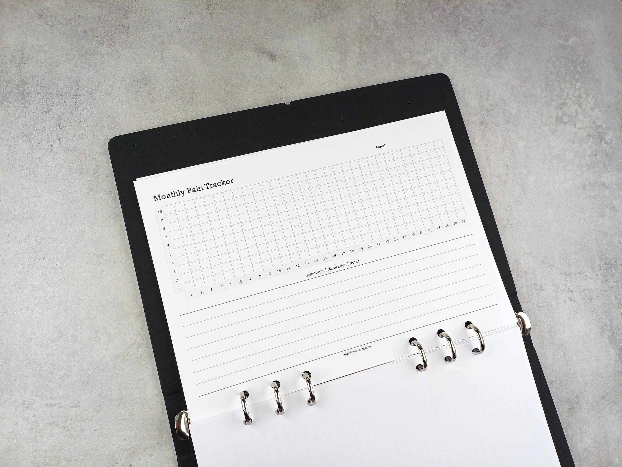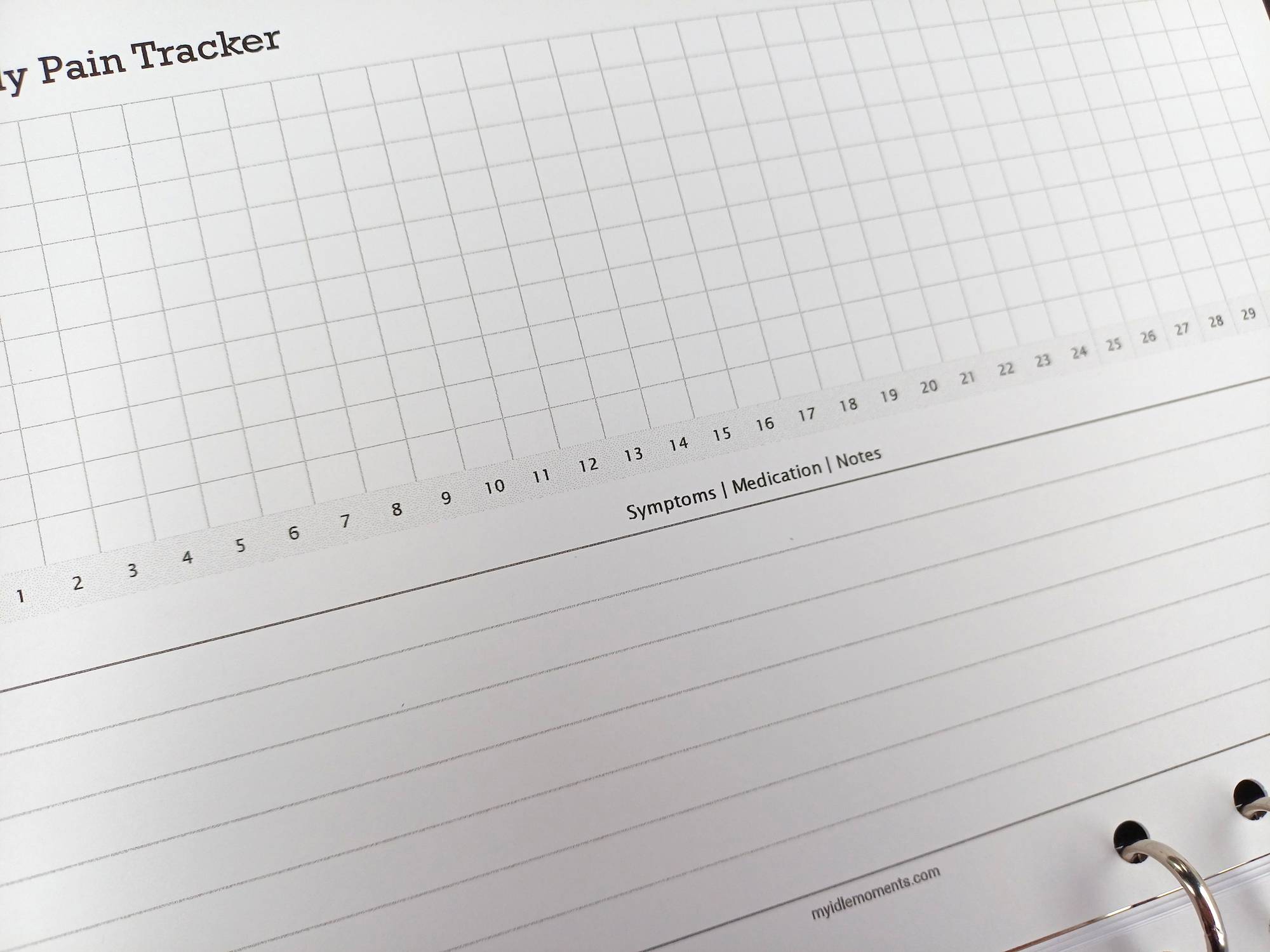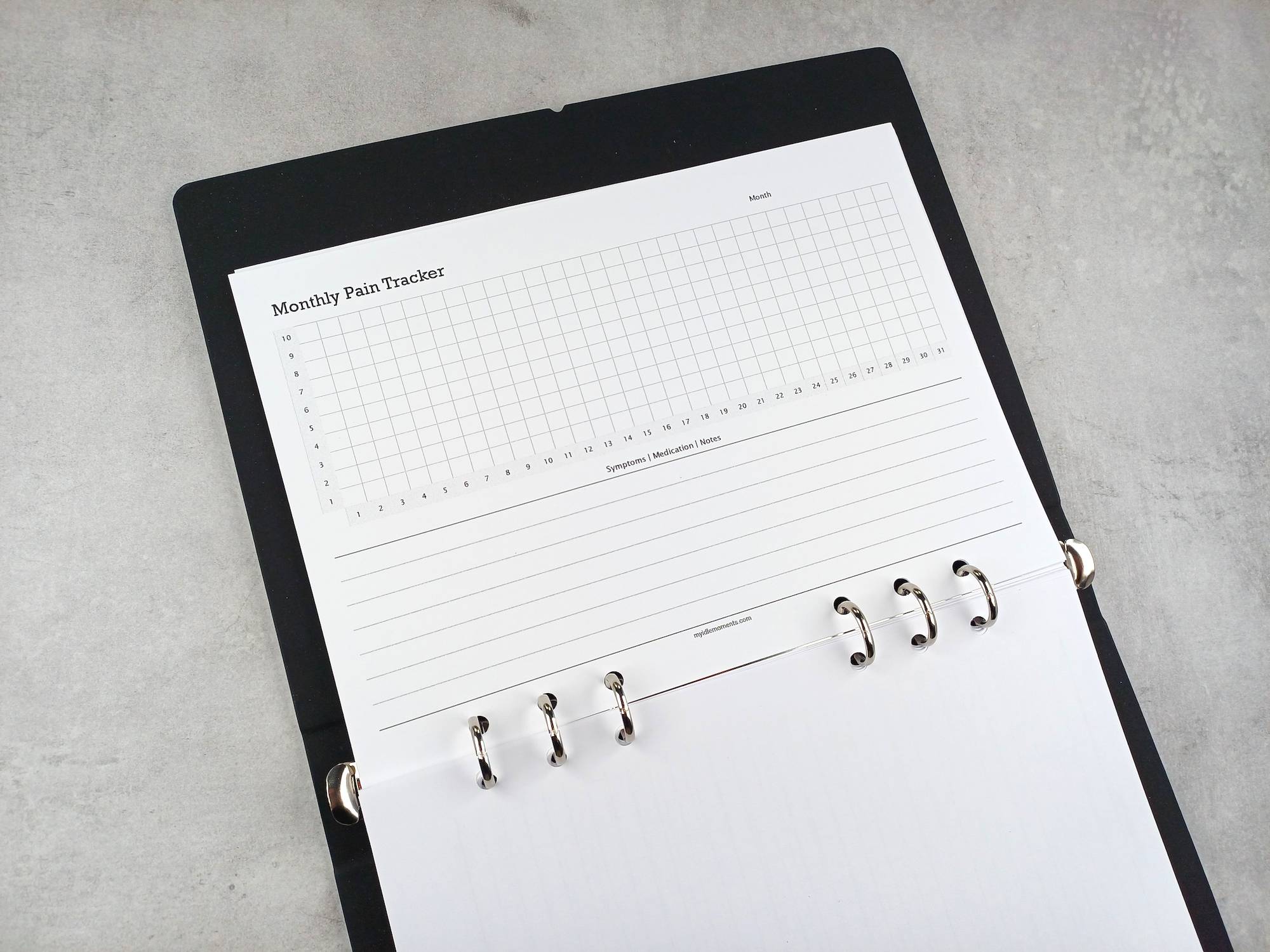 Monthly pain tracker sizes
