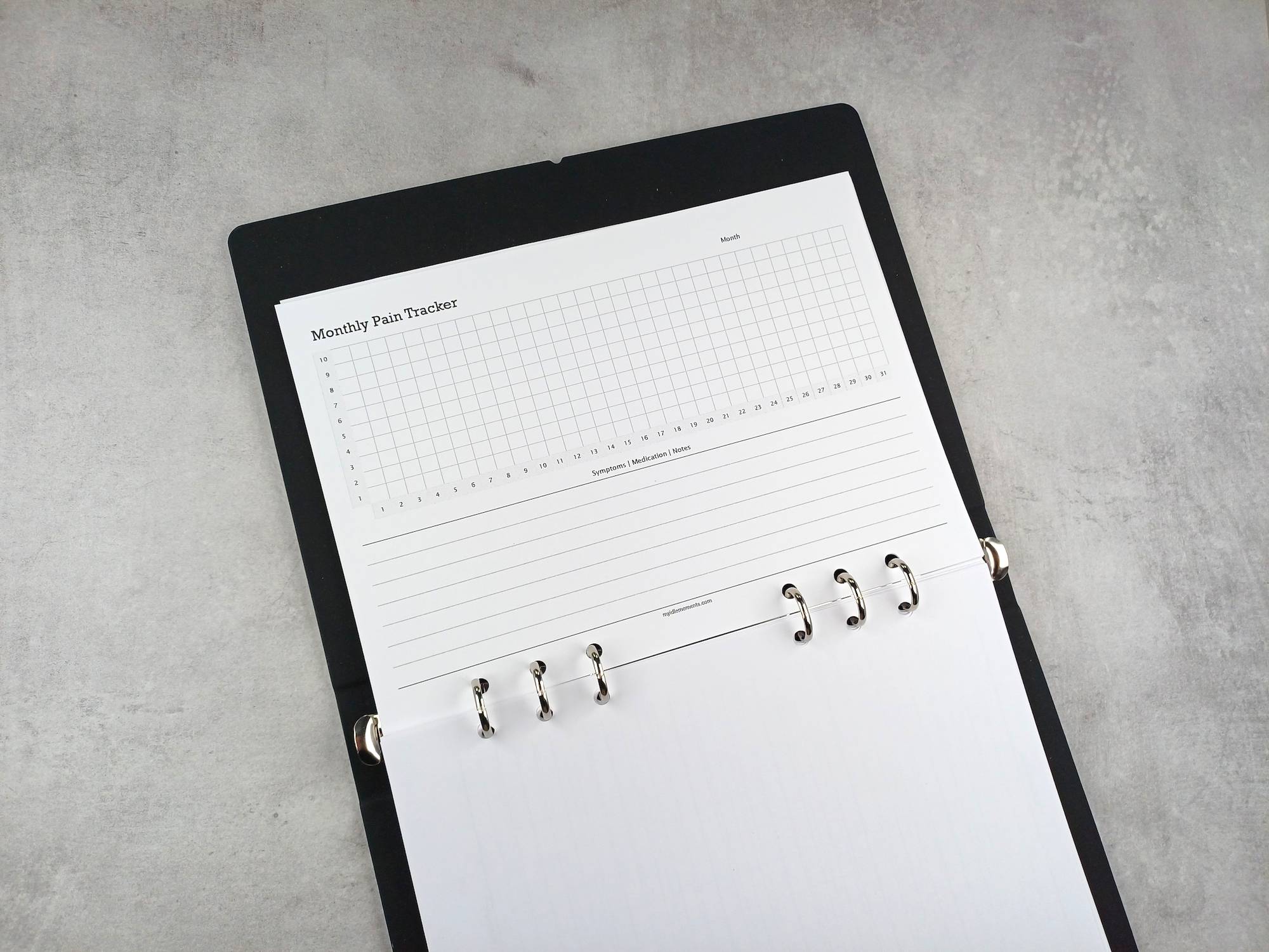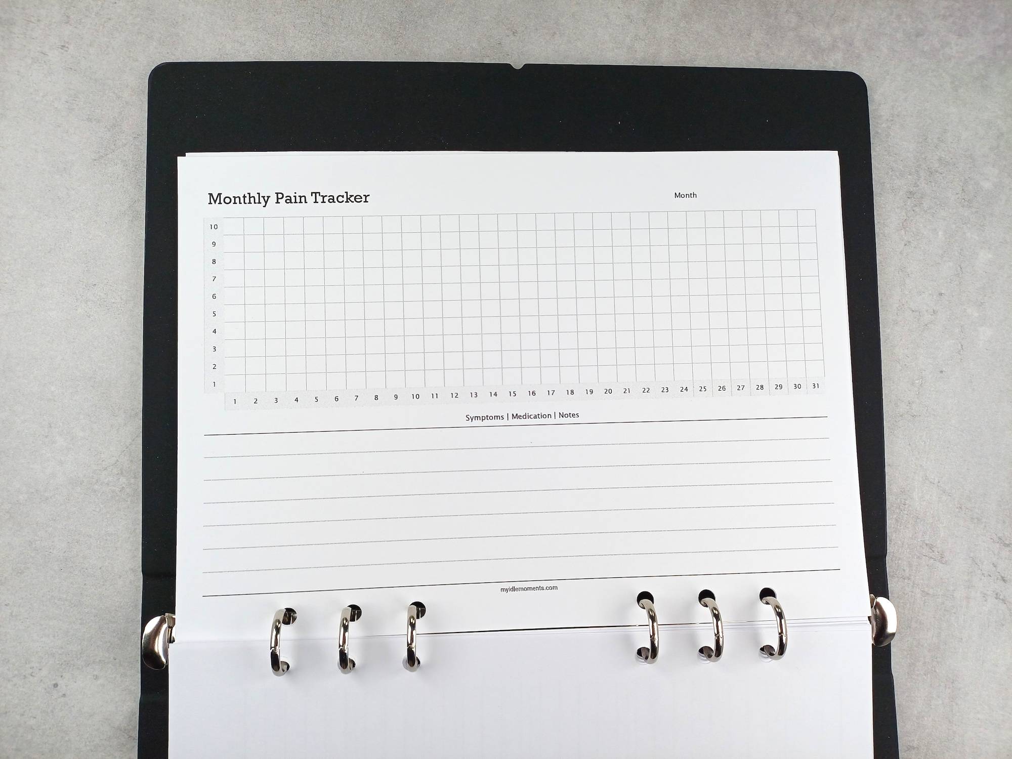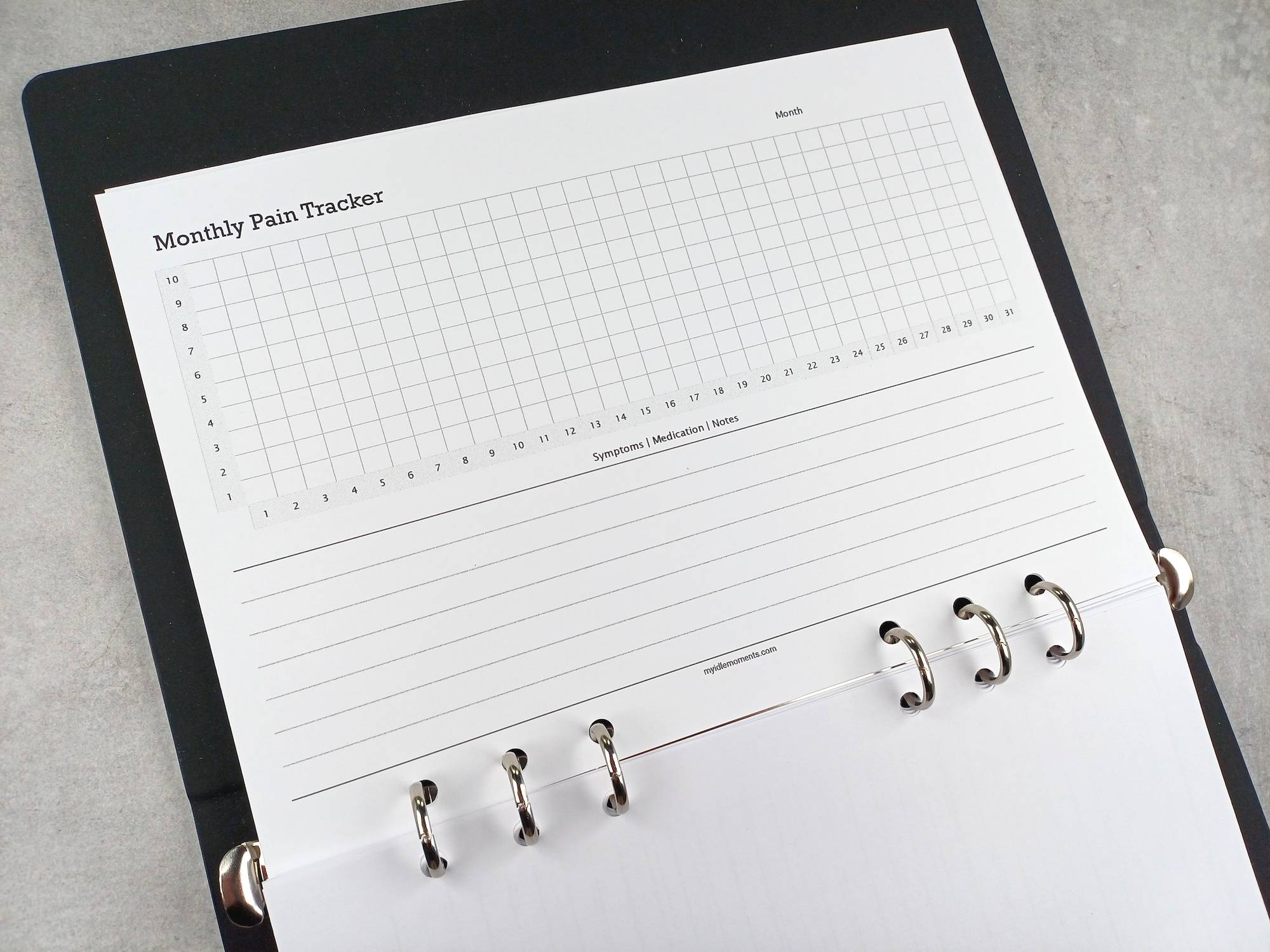 Monthly pain tracker sizes